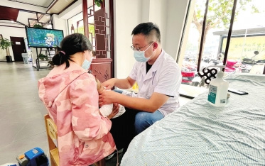 醫(yī)生在給患兒進(jìn)行推拿