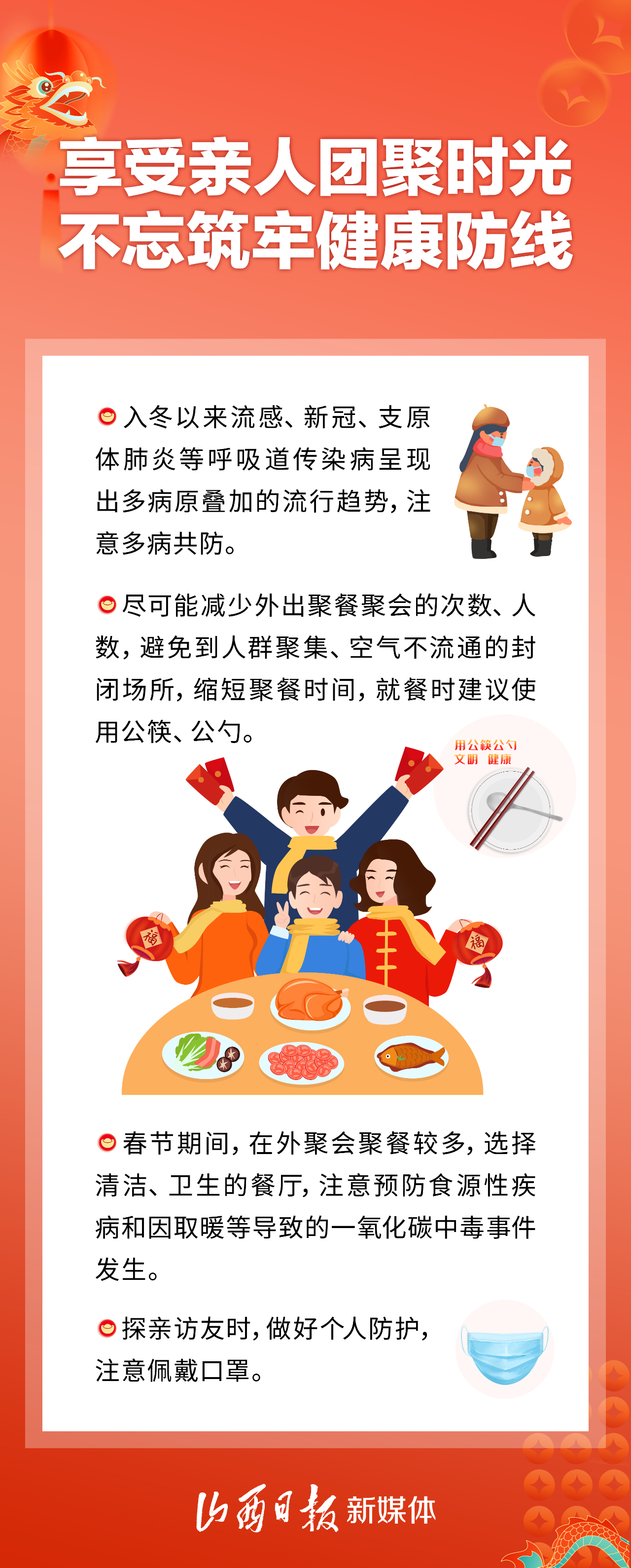 當(dāng)前正值呼吸道、腸道傳染病多發(fā)季節(jié),伴隨春節(jié)假期的來臨,人員流動和聚集性活動明顯增多,做好個人防護(hù)很重要。為此送上健康小貼士,開開心心迎新年。