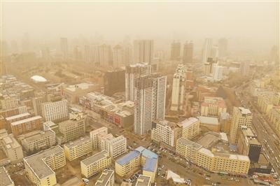 沙塵天氣下哈爾濱市主城區(qū)一角。新華社記者 謝劍飛攝
