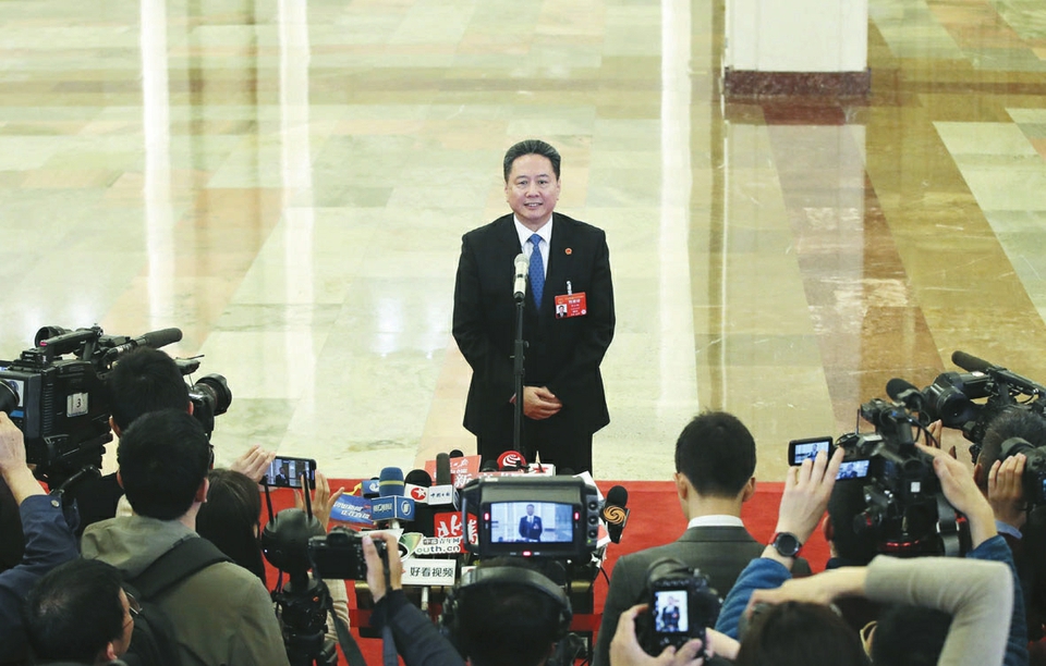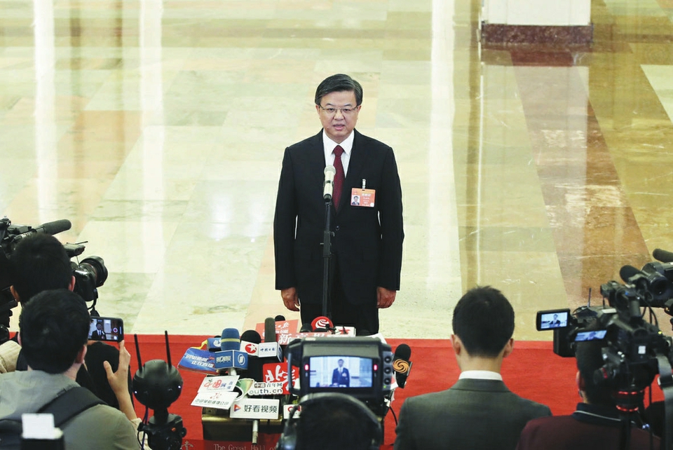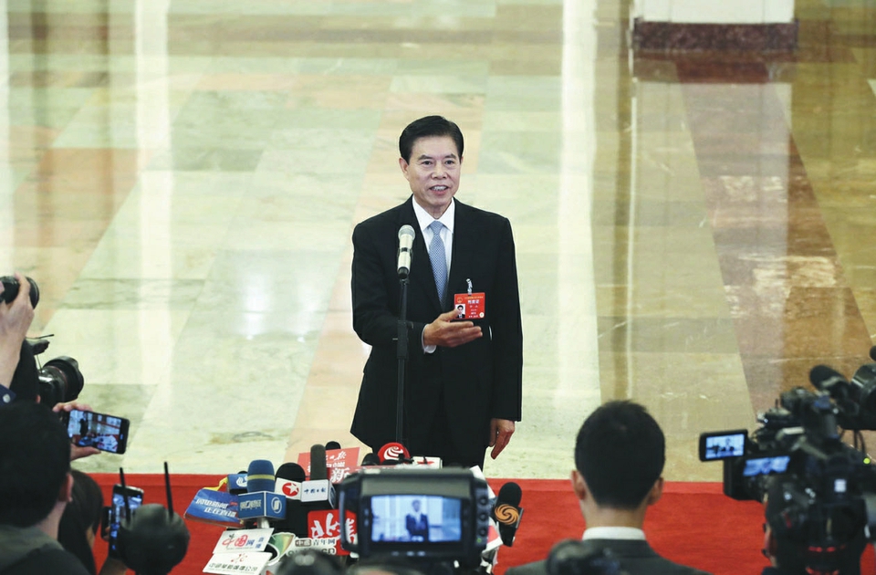 3月5日上午,十三屆全國人大二次會議開幕會結(jié)束后,第二場“部長通道”舉行。銀保監(jiān)會主席郭樹清、商務(wù)部部長鐘山、交通運輸部部長李小鵬、工信部部長苗圩、海關(guān)總署署長倪岳峰、國家市場監(jiān)管總局局長張茅、農(nóng)業(yè)農(nóng)村部部長韓長賦、國臺辦主任劉結(jié)一先后亮相,回應(yīng)熱點問題。