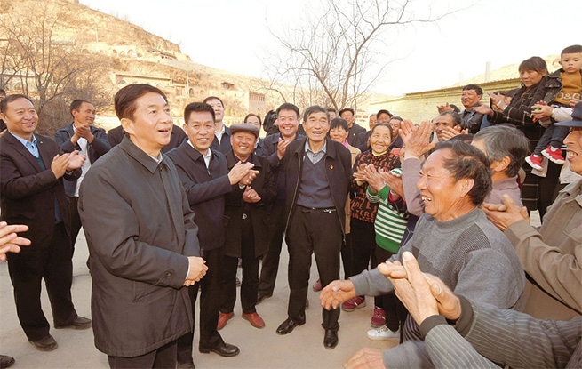 三月二十五日,駱惠寧在臨縣大禹鄉(xiāng)前陽塔村指導(dǎo)干部進(jìn)村服務(wù)工作,與村民們親切交談,希望在整村脫貧基礎(chǔ)上確立新的目標(biāo),繼續(xù)努力奮斗,使日子越過越好。