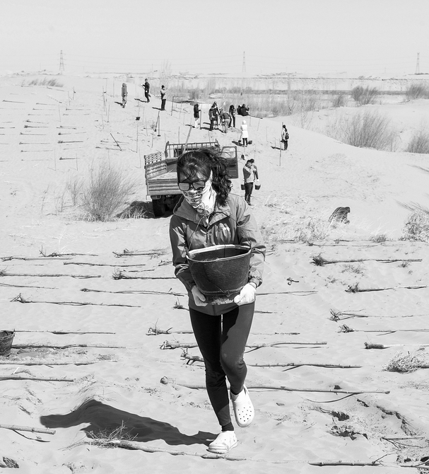 3月31日,一名青年志愿者正在取水澆灌。當(dāng)日,200余名中韓兩國(guó)青年志愿者來(lái)到內(nèi)蒙古自治區(qū)達(dá)拉特旗庫(kù)布其沙漠種樹(shù)。2006年起,中國(guó)國(guó)際青年交流中心與韓國(guó)韓中文化青少年協(xié)會(huì)組織兩國(guó)青年志愿者在庫(kù)布其沙漠植樹(shù),參與防沙固沙項(xiàng)目。截至目前已植樹(shù)850多萬(wàn)株,造林3萬(wàn)多畝。新華社記者劉磊攝