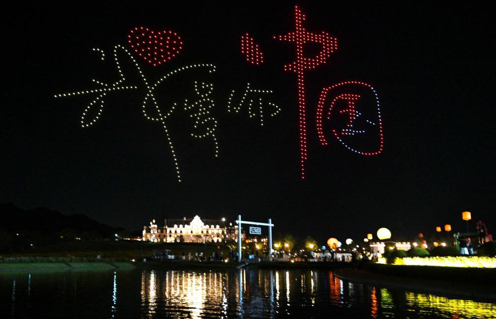 10月4日晚,在浙江省金華市武義縣花田美地景區(qū),精彩的無人機表演為游客呈現(xiàn)了一場視覺盛宴。新華社發(fā)(張建成攝)