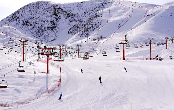 3月10日,游客在將軍山滑雪場滑雪。 新華社發(fā)(哈麗哈什·哈布德西攝)