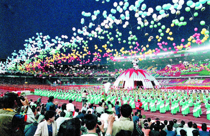 1990年9月22日至10月7日,第十一屆亞運(yùn)會(huì)在北京舉行。這是中國首次舉辦國際綜合性運(yùn)動(dòng)會(huì)。圖為開幕式現(xiàn)場。 新華社發(fā)