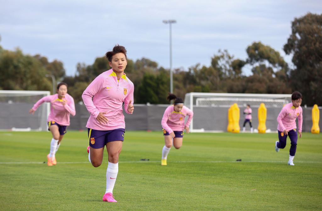 7月10日,中國隊(duì)球員王霜(左二)在訓(xùn)練中。新華社發(fā)(謝思達(dá)攝)