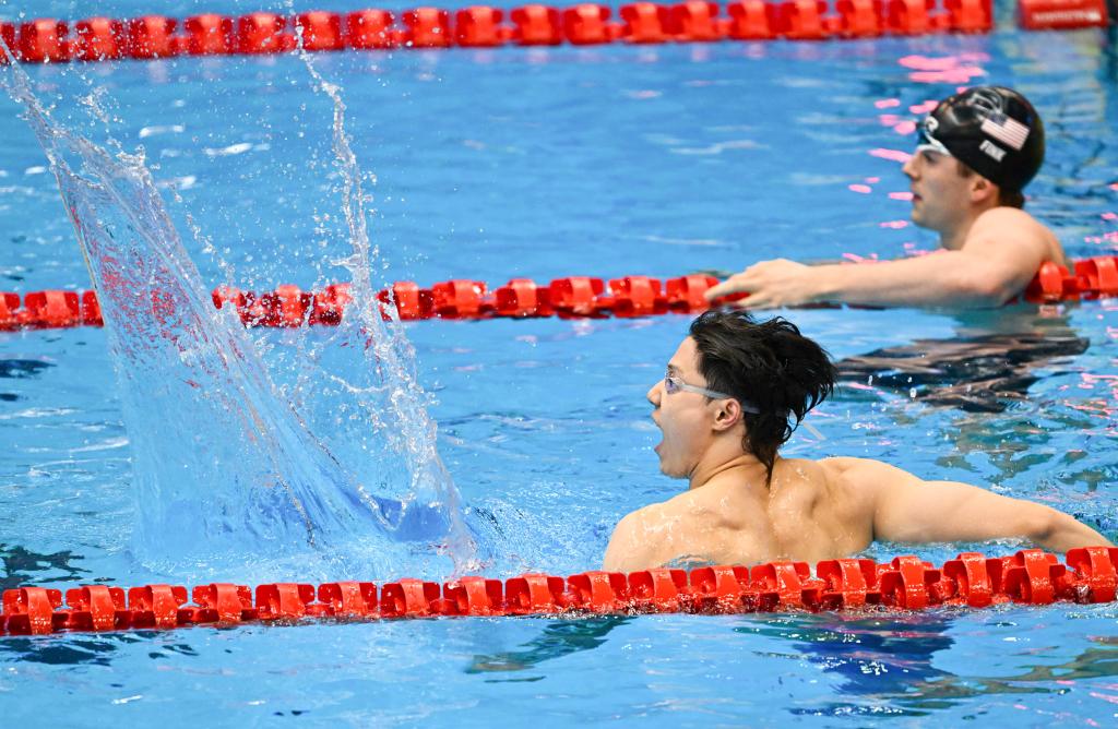 24歲的覃海洋當(dāng)天為中國(guó)隊(duì)奪得歷史上首枚世錦賽男子蛙泳金牌,57秒69的成績(jī)?cè)俅未蚱苼喼藜o(jì)錄。在23日的預(yù)賽和半決賽,覃海洋就已經(jīng)顯示出極好的狀態(tài),兩度刷新亞洲紀(jì)錄。荷蘭名將坎明加、意大利泳將馬丁嫩吉和美國(guó)老將尼克·芬克三人以58秒72并列第二名。閆子貝名列第六。