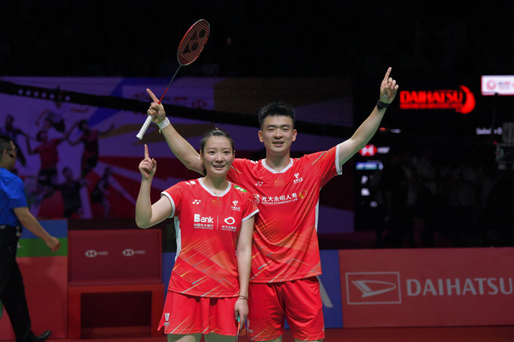 鄭思維/黃雅瓊以21:15拿下首局后,第二局一度以7:10被日本組合綠川大輝/齋藤夏領(lǐng)先,但鄭思維/黃雅瓊隨后迅速逆轉(zhuǎn)局勢,以21:16拿下第二局,為中國隊(duì)摘得首金。