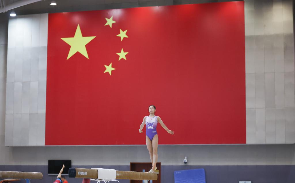 5月8日,中國(guó)體操隊(duì)隊(duì)員歐鈺珊在訓(xùn)練中。新華社記者 曹燦 攝