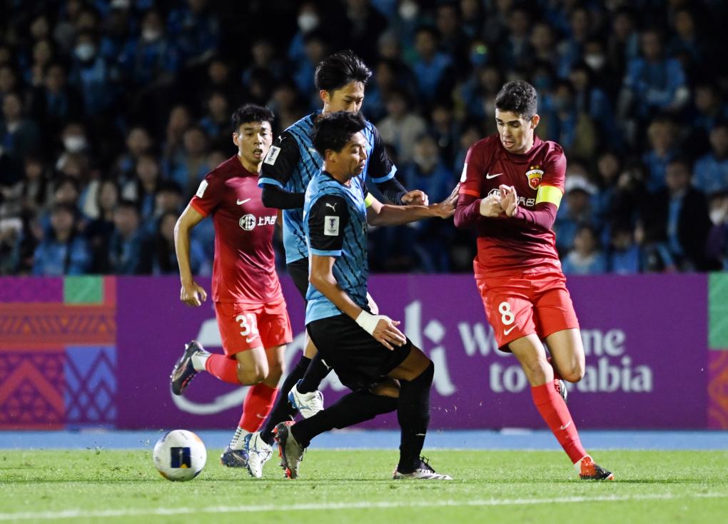 上海海港隊中場休息后連換三人,加強(qiáng)了前場丟球后的就地反搶。主隊則在大比分領(lǐng)先的局面下收縮陣型。一番猛攻后,上海海港隊終于在第83分鐘取得進(jìn)球:巴爾加斯遠(yuǎn)射直掛球門死角。臨近比賽結(jié)束,川崎前鋒隊的進(jìn)球功臣家長昭博肘擊奧斯卡,領(lǐng)到第二張黃牌被罰下場。