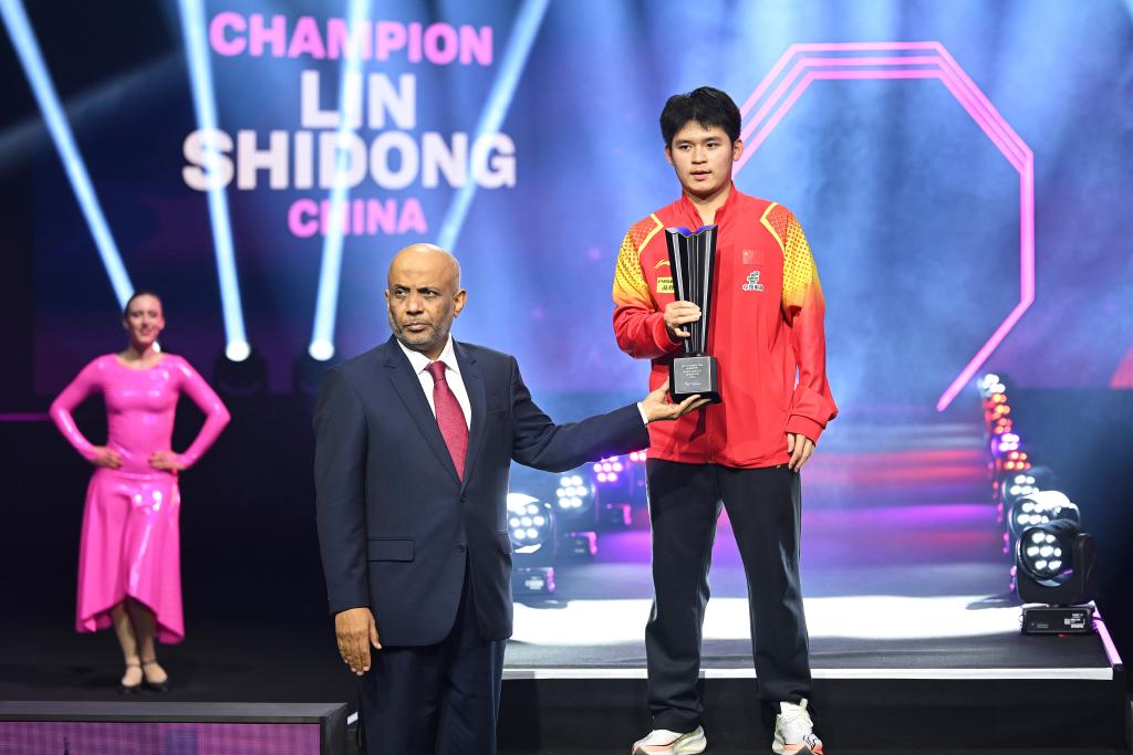 前三局林詩棟以11:5、11:7、11:9順利贏下??柌竦谒木职l(fā)動(dòng)反擊,以11:8扳回一城。林詩棟隨后回敬一局11:8,以總比分4:1勝出,摘得冠軍。