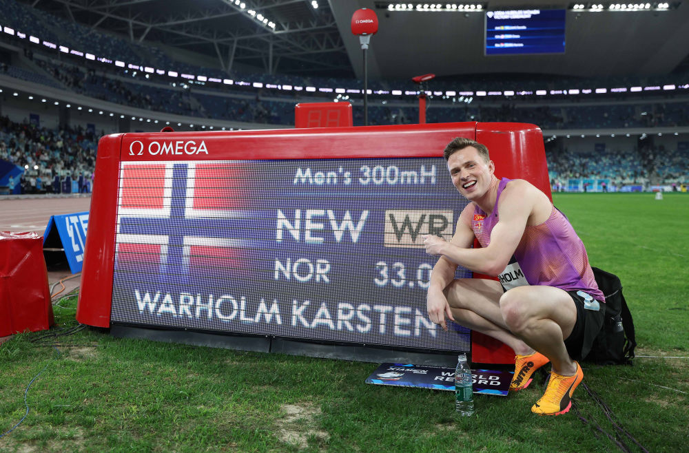 今年3月,世界田聯(lián)宣布300米欄為正式比賽項(xiàng)目并納入官方紀(jì)錄體系。在當(dāng)日廈門站比賽中,瓦霍爾姆一馬當(dāng)先,率先撞線,超越了2021年由他本人創(chuàng)造的男子300米欄世界最佳成績(jī)(33秒26)。