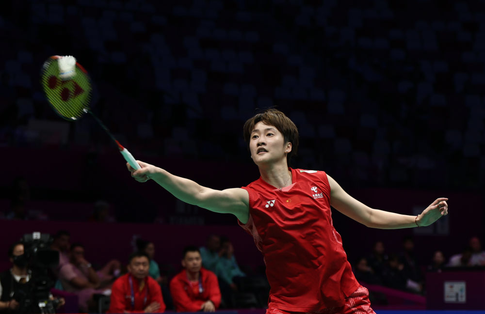 4月28日,中國隊選手陳雨菲在女單比賽中回球。最終,陳雨菲2:0戰(zhàn)勝中國香港隊選手盧善恩。新華社記者 魏培全 攝