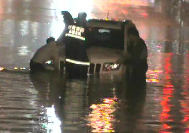 7時(shí)59分,同一地點(diǎn),又1輛小轎車駛?cè)胨袩o(wú)法自救,忻州支隊(duì)楊屹茂支隊(duì)長(zhǎng)聞?dòng)嵙⒓从H自帶隊(duì)趕到。到達(dá)現(xiàn)場(chǎng)后,楊屹茂支隊(duì)長(zhǎng)立即指示忻府區(qū)中隊(duì)成立偵查小組,對(duì)現(xiàn)場(chǎng)情況進(jìn)行偵查。根據(jù)偵查小組的反饋得知,被困車輛淹埋水位線為60公分左右,車內(nèi)有一名人員被困。當(dāng)時(shí)正值暴雨天氣,水位線上漲,不斷威脅車內(nèi)被困人員的生命財(cái)產(chǎn)安全。隨后,楊屹茂支隊(duì)長(zhǎng)迅速組織全體官兵,從被困車輛兩側(cè)和車頭,將被困車輛推出。