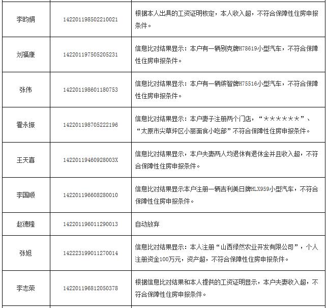 2014年申報公(廉)租房不符合保障條件花名表