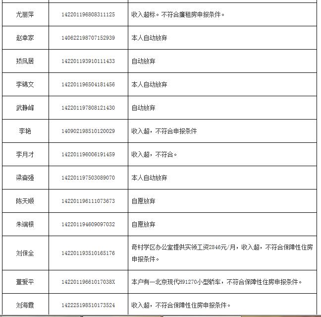 2014年申報(bào)公(廉)租房不符合保障條件花名表