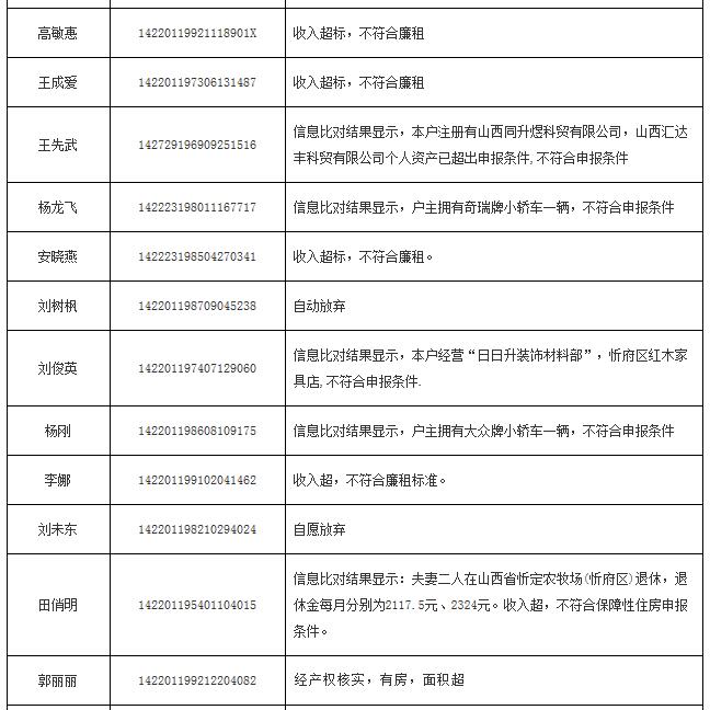 2014年申報(bào)公(廉)租房不符合保障條件花名表