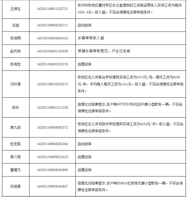 2014年申報公(廉)租房不符合保障條件花名表