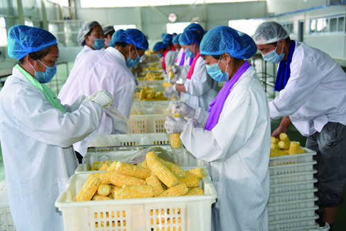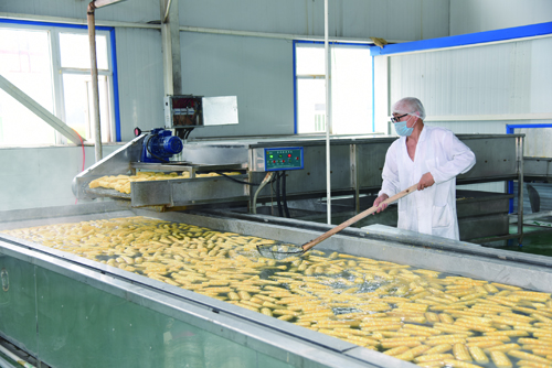 加工生產(chǎn)水果玉米的熱烈場(chǎng)面