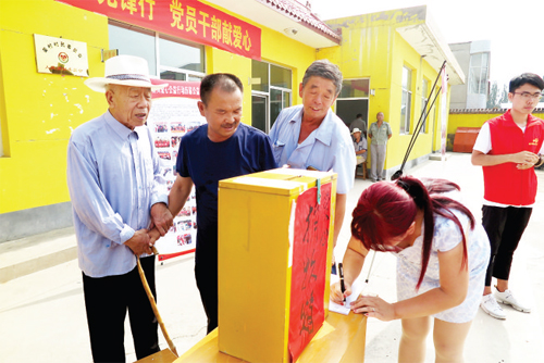 晏村村委會(huì)組織的捐款現(xiàn)場(chǎng)