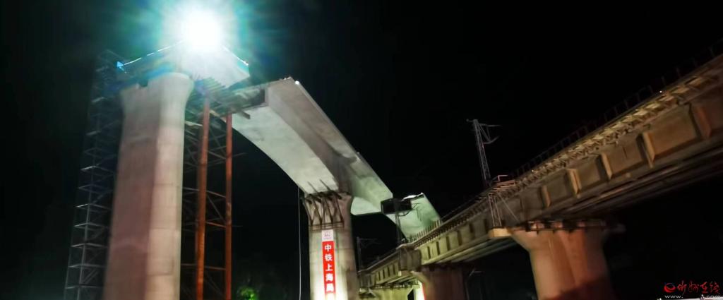 7月29日凌晨,歷時(shí)120分鐘轉(zhuǎn)體,集大原高鐵山西段站前4標(biāo)樊家莊跨韓原鐵路特大橋(40+64+40)m連續(xù)梁成功轉(zhuǎn)體對(duì)接,標(biāo)志著集大原高鐵山西段的首個(gè)大橋連續(xù)梁成功轉(zhuǎn)體,為年底全線完成箱梁架設(shè)和路基預(yù)壓任務(wù)奠定基礎(chǔ)。