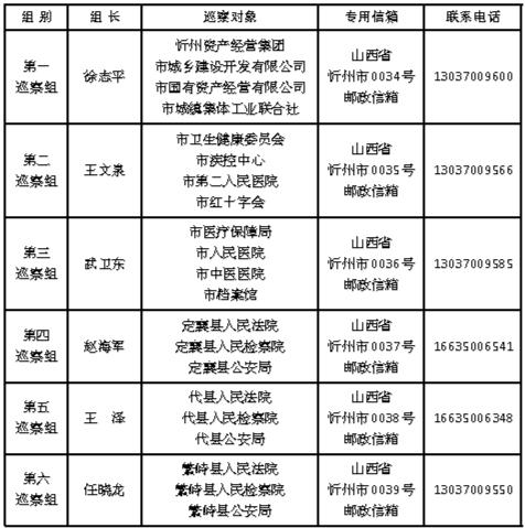 五屆忻州市委第六輪巡察進(jìn)駐情況一覽表