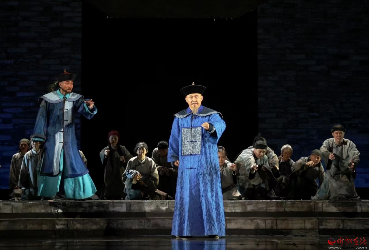 宏大震撼的舞美效果與細(xì)膩精湛的表演絲絲入扣,讓現(xiàn)場(chǎng)觀眾全身心沉浸其中。劇中大名知縣趙履謙的阿諛?lè)畛?、布政使奇英的陰險(xiǎn)狡詐、官場(chǎng)裙帶的纏纏繞繞、小舅子邢家良的不諳世事,為法情交織的愛(ài)恨情仇埋下了深深的伏筆。