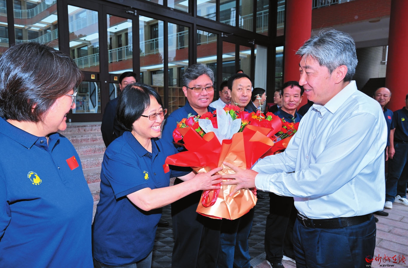 “教師是最光榮、最光輝的職業(yè),感謝你們的辛苦付出和無私奉獻。”在忻州市第一中學校,朱曉東看望慰問了一線教師代表,詳細了解學校招生錄取、教育教學管理等情況。他指出,忻州一中文化底蘊深厚、辦學理念先進,是全市教育系統(tǒng)的“金字招牌”。近年來,學校在學生教育、師資隊伍建設等方面精耕細作,各項工作實現(xiàn)全方位提升,呈現(xiàn)出蓬勃發(fā)展的良好態(tài)勢。全體教職工牢記初心使命,立足三尺講臺,培養(yǎng)造就了一大批高素質(zhì)人才,為全市高質(zhì)量發(fā)展作出了積極貢獻。希望廣大教師大力弘揚教育家精神,繼續(xù)堅守崗位,扎實做好本職工作,著力辦好人民滿意的教育。老教師要充分發(fā)揮“傳、幫、帶”作用,幫助青年教師盡快提升專業(yè)技能和業(yè)務水平,助力青年教師快速健康成長。學校要關心關愛教師隊伍,聚焦教師特別是外地教師的工作和生活需求,全力解決他們的后顧之憂,激勵他們?nèi)硇耐度牍ぷ?。各級各有關部門要大力支持教育事業(yè)發(fā)展,積極營造尊師重教的濃厚氛圍,為廣大教師教書育人創(chuàng)造良好環(huán)境。