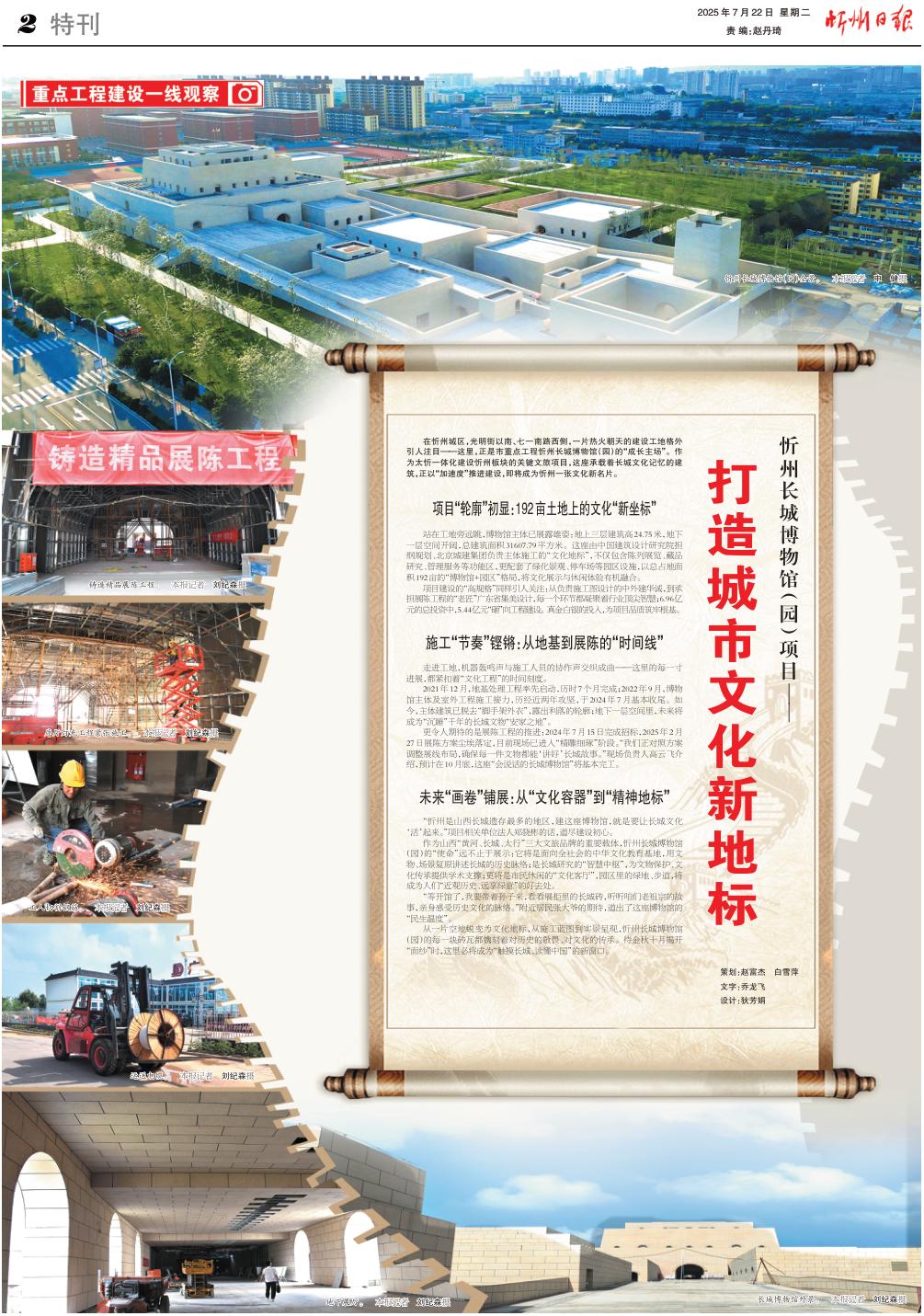 從一片空地蛻變?yōu)槲幕貥?,從施工藍圖到實景呈現,忻州長城博物館(園)的每一塊磚瓦都鐫刻著對歷史的敬畏、對文化的傳承。待金秋十月揭開“面紗”時,這里必將成為“觸摸長城、讀懂中國”的新窗口。