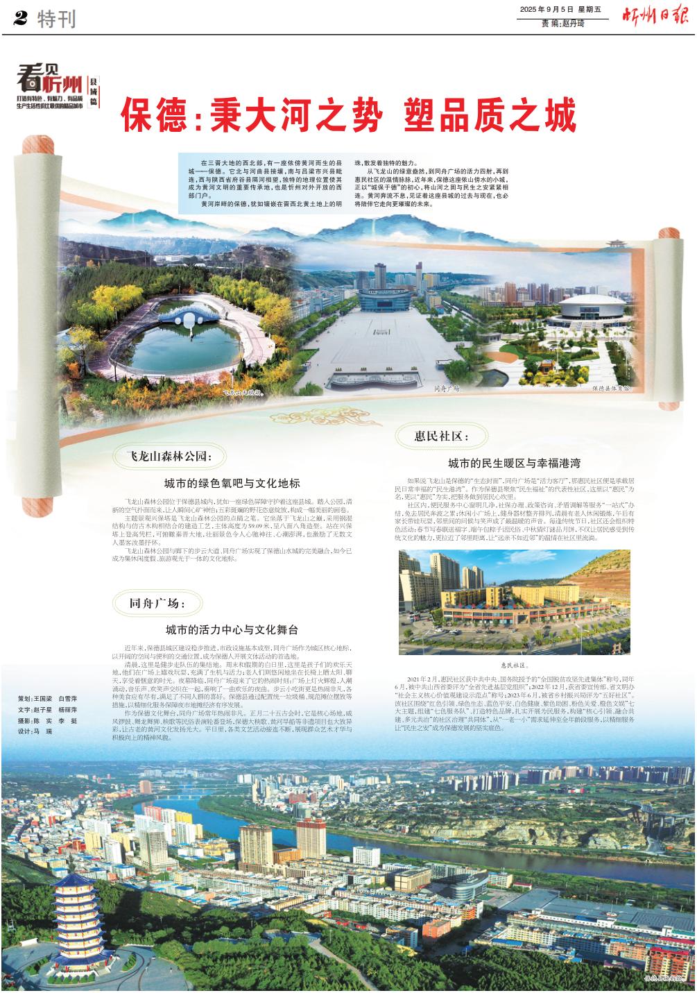 從飛龍山的綠意盎然,到同舟廣場(chǎng)的活力四射,再到惠民社區(qū)的溫情脈脈,近年來(lái),保德這座依山傍水的小城,正以“城保于德”的初心,將山河之固與民生之安緊緊相連。黃河奔流不息,見(jiàn)證著這座縣城的過(guò)去與現(xiàn)在,也必將陪伴它走向更璀璨的未來(lái)。