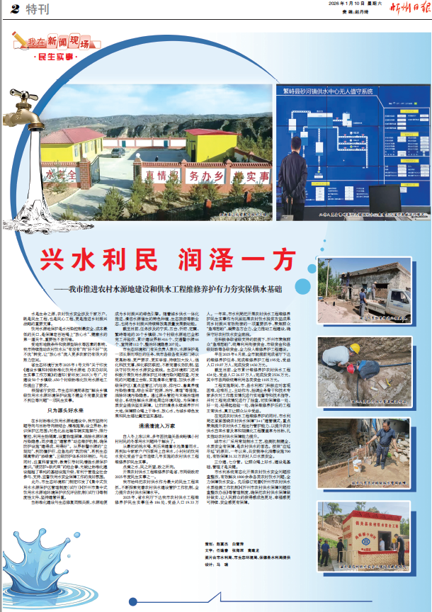 開展農(nóng)村供水工程維修養(yǎng)護(hù)是省、市兩級(jí)政府2025年度民生實(shí)事之一。