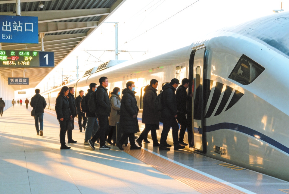 忻州西站旅客正抓緊時間乘車