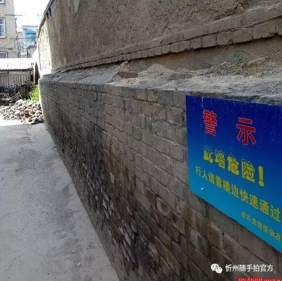 有拍友反映: 正值雨季來臨,位于繁峙縣舊法院小區(qū)西墻年久失修,多處開裂傾斜,墻體下部已倒塌,整扇土墻隨時(shí)都有崩塌的危險(xiǎn)。危墻下二米寬的通道是宿舍住戶必經(jīng)之路。人們每天走到此處都會(huì)擔(dān)驚受怕,危墻嚴(yán)重危及二十多家住戶人員的生命安全。院墻隸屬于墻西住戶,墻體傾斜于舊法院宿舍這面,多次找主人商談,一直無人理睬。繁峙縣西石龍居委會(huì)只是貼了一個(gè)小提示,就沒有了下文,試問這樣的事情誰來管,等到出了大事,該找誰?希望有關(guān)部門和領(lǐng)導(dǎo)能夠引起重視早做處理,防患于未然!
