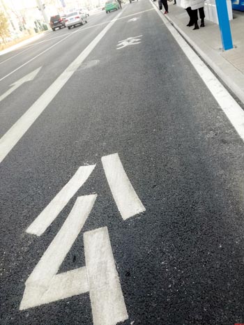 圖為城區(qū)長征中街(君華新天地對面)一公交站牌處,印在路面上的“公交車”三個(gè)字順序錯(cuò)誤。正常閱讀順序是從上至下,從左至右,希望相關(guān)部門更正。一網(wǎng)友攝