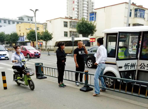 在城區(qū)體育廣場人行橫道上,交警對不禮讓行人的車輛進行處罰,受到市民關注和贊同。