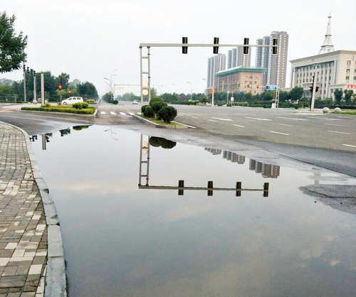 城區(qū)雁門大道與慕山路十字路口東南角,每到下大雨就有較深的積水。望相關部門及時進行處理。9月1日一網(wǎng)友攝