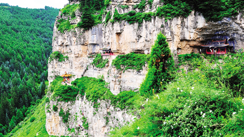 在天然形成的垂直巖壁上,古人鑿?fù)碎L(zhǎng)達(dá)42華里的棧道,有的地方有一人高,有的地方必須伏下身爬過去,在兩山之間,還有長(zhǎng)長(zhǎng)的吊橋連接。