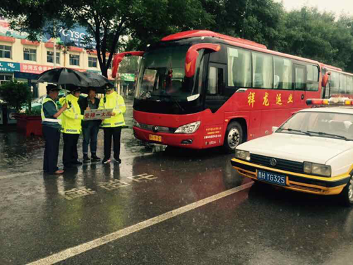 稽查人員叮囑駕駛人員雨天行車注意事項 針對我市近期降水量大的實際,定襄運管所加強對客運車輛的安全監(jiān)管,嚴防客車“帶病”上路。該所一方面督促運輸企業(yè)加強對駕駛員雨季安全駕駛教育培訓,另一方面督促客運站和客運企業(yè)嚴格落實“三不進站、六不出站”規(guī)定,重點加強對“兩客一?!边\輸車輛及從業(yè)人員的資格查驗,對安全檢查不合格的車輛和人員不得放行出站。(田嵩 攝)