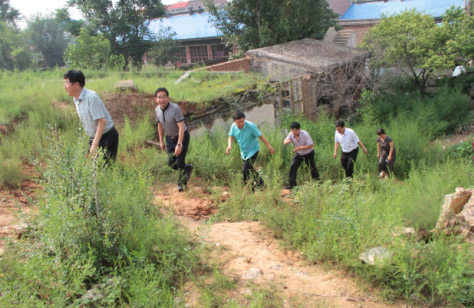 大家認為:土堆頂部與源頭積水約50平方,不是很多,因土堆屬活土,所以遇雨水沖刷順坡流向村中。區(qū)長趙志偉指著村民們用編織袋裝土垛起來的攔洪壩,提出解決方案:首先要打一高約5米的石頭壩,找出送水通道,將水直接于防洪干渠對接。第二要通知區(qū)水利局明日就開展水利測繪,盡快拿出方案。
