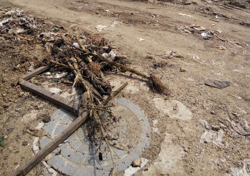 一位村民指著西面被垃圾包圍的一個(gè)鐵皮焊接成的小門說:“這就是我們?nèi)迦顺运乃?,水從井里抽出,通過管道送往距此地約300多米的蓄水池,然后在供給各家各戶,這是我們?nèi)逦ㄒ坏某运!?/p>