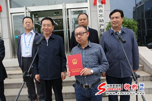 本報訊 9月27日上午,我市舉行不動產(chǎn)登記局、不動產(chǎn)登記中心揭牌暨市本級首本不動產(chǎn)權(quán)證書頒發(fā)儀式。省國土廳副廳長武耀文、副市長武憲堂參加儀式。