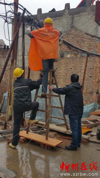 “這么大的雨,還要上桿接線,固定表箱,你們真不容易……”站在屋檐下的忻州城區(qū)新建北路東一巷的居民們看著冒著大雨搶修線路移動表箱渾身濕透的供電搶修人員發(fā)出感慨之言。