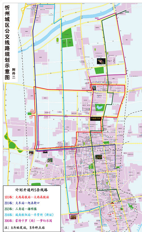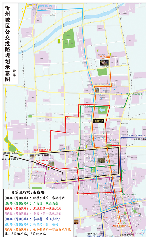 途經(jīng)站點(diǎn):三角道→醫(yī)藥公司→火車站→利民街口→利民街新建路口→利民街七一路口→忻州市黨?!鷲?cè)A酒店→康樂小區(qū)→婦幼保健站→溫馨苑小區(qū)→忻府區(qū)人民法院→東方賓館→欣秀苑小區(qū)→人民公園→忻州市政務(wù)大廳→云中花園→漢鼎酒店,共19個(gè)站點(diǎn)。