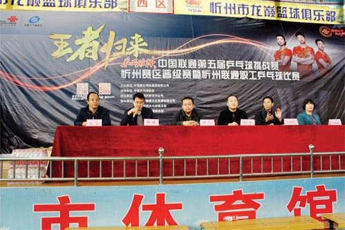 中國聯(lián)通乒乓球挑戰(zhàn)賽前期已成功舉辦四屆,全國共有72000 人參加。今年的賽事以“乒乓在沃,王者歸來”為活動主題,攜手國乒傾情回饋熱愛運動的廣大聯(lián)通用戶,為聯(lián)通客戶提供與國手親密互動的專享契機。本屆比賽得到了中國乒乓球協(xié)會的大力支持,由中國聯(lián)合網絡通信有限公司山西省分公司主辦,中國聯(lián)合網絡通信有限公司忻州市分公司承辦,北京中廣賽博文化發(fā)展有限公司協(xié)辦。