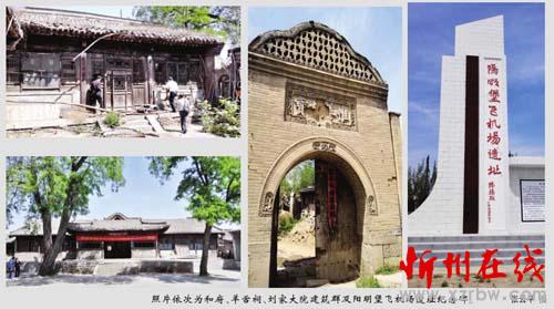 2000多年來(lái),陽(yáng)明堡歷經(jīng)無(wú)數(shù)次戰(zhàn)火、自然災(zāi)害及人為破壞,如今輝煌時(shí)期的風(fēng)貌早已不存在,但畢竟還是留下了一些歷史遺存,著名的有廣武古城、羊舌祠、劉家祠堂、和府、馬站戲樓、李克用墓、白人巖以及陽(yáng)明堡飛機(jī)場(chǎng)遺址紀(jì)念碑等,并扛起中國(guó)歷史文化名鎮(zhèn)的名聲。