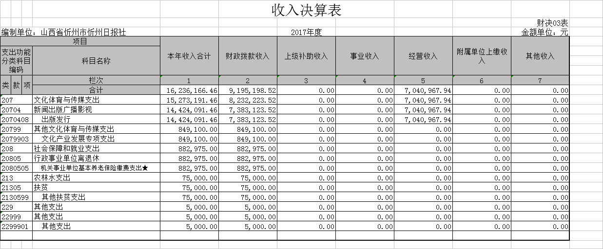 忻州日?qǐng)?bào)社是一級(jí)預(yù)算單位,無下屬單位。部門決算只有一個(gè)單位,即忻州日?qǐng)?bào)社。
