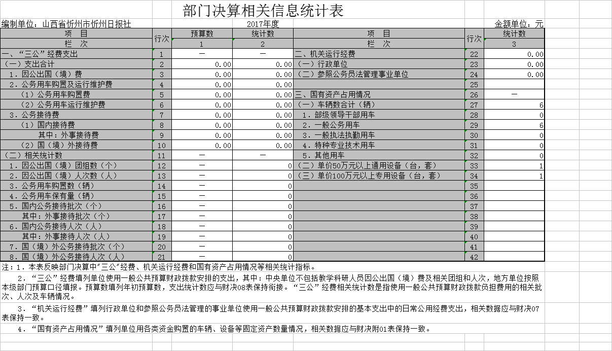 忻州日?qǐng)?bào)社是全額事業(yè)單位,財(cái)政只撥付人員經(jīng)費(fèi)。我單位從財(cái)政撥款中沒有支出“三公經(jīng)費(fèi)”,“三公經(jīng)費(fèi)”數(shù)字為0,故有關(guān)“三公經(jīng)費(fèi)”的內(nèi)容均為0。一般公共預(yù)算“三公”經(jīng)費(fèi)支出表、“三公”經(jīng)費(fèi)增減變化原因及因公出國、公務(wù)用車及公務(wù)接待等項(xiàng)均無數(shù)字。