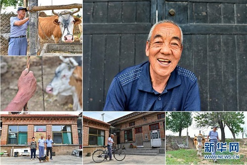尚彩良,男,1949年出生,山西省長治市潞城區(qū)比干嶺村人,家傳的養(yǎng)殖技術(shù)讓他從小不愁吃穿,但突如其來的患病導(dǎo)致他生活陷入困難。2015年開始,他享受貧困戶養(yǎng)殖補(bǔ)貼、種植補(bǔ)貼和醫(yī)療補(bǔ)貼,2016年在當(dāng)?shù)卣膸椭伦∵M(jìn)了新房。 右上:尚彩良肖像;左上:尚彩良準(zhǔn)備去放牛;左中:尚彩良在放牛;左下:尚彩良(中)和家人在新院子里合影;下中:尚彩良推著自行車走進(jìn)院子;下右:尚彩良在去放牛的路上(拼版照片,6月12日攝)。 地處晉東南的山西省長治市,位于由太行山、太岳山環(huán)繞而成的上黨盆地中。在群山中、崖壁上,許多村莊自然條件惡劣,基礎(chǔ)設(shè)施落后,脫貧致富是大山深處人們的迫切心愿。 近年來,一場場脫貧攻堅戰(zhàn),在一個個深山村打響。政府全力探索脫貧路徑的同時,山區(qū)百姓因地制宜,靠自己的雙手和智慧走上致富路,交出了一份扎實的脫貧答卷。 記者在太行山、太岳山一路尋訪,記錄下多位70歲老人的生活。這些共和國的同齡人,親歷了山鄉(xiāng)的巨變,見證著長治山區(qū)脫貧攻堅偉大工程的一步步推進(jìn)。 新華社記者 曹陽 攝