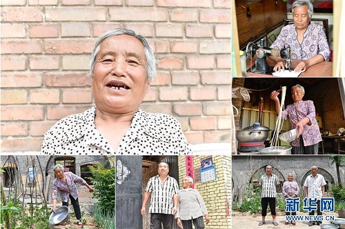 鄭引蘭,女,1949年出生,山西省長治市潞城區(qū)西靳村人,2015年因家人患病而被納入建檔立卡貧困戶。現(xiàn)在,多項扶貧政策讓全家人的生活有了明顯改善,當?shù)卣畮椭7扛脑斓母G洞也即將完工。 左上:鄭引蘭肖像;右上:鄭引蘭在使用縫紉機;右中:鄭引蘭在廚房盛飯;右下:鄭引蘭(中)一家人合影;下中:鄭引蘭和兒子走出家門;下左:鄭引蘭在院子里給植物澆水(拼版照片,6月12日攝)。 地處晉東南的山西省長治市,位于由太行山、太岳山環(huán)繞而成的上黨盆地中。在群山中、崖壁上,許多村莊自然條件惡劣,基礎設施落后,脫貧致富是大山深處人們的迫切心愿。 近年來,一場場脫貧攻堅戰(zhàn),在一個個深山村打響。政府全力探索脫貧路徑的同時,山區(qū)百姓因地制宜,靠自己的雙手和智慧走上致富路,交出了一份扎實的脫貧答卷。 記者在太行山、太岳山一路尋訪,記錄下多位70歲老人的生活。這些共和國的同齡人,親歷了山鄉(xiāng)的巨變,見證著長治山區(qū)脫貧攻堅偉大工程的一步步推進。 新華社記者 曹陽 攝