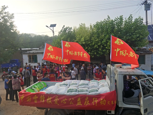 在發(fā)放現(xiàn)場(chǎng),受災(zāi)群眾感受到了志愿者的關(guān)愛(ài),看在眼里,暖在心里,整個(gè)村里呈現(xiàn)出一片溫馨快樂(lè)的氛圍。